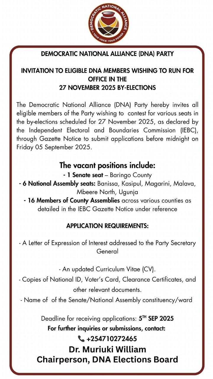 The Democratic National Alliance Party (DNA) believes that Kenya’s strength lies in our unique national identity, our shared culture, and our sovereign right to determine our own future. Just like the DNA in every Kenyan holds the essential code of who we are, Kenya itself has a core identity – built on our rich heritage, traditions, and enduring values.